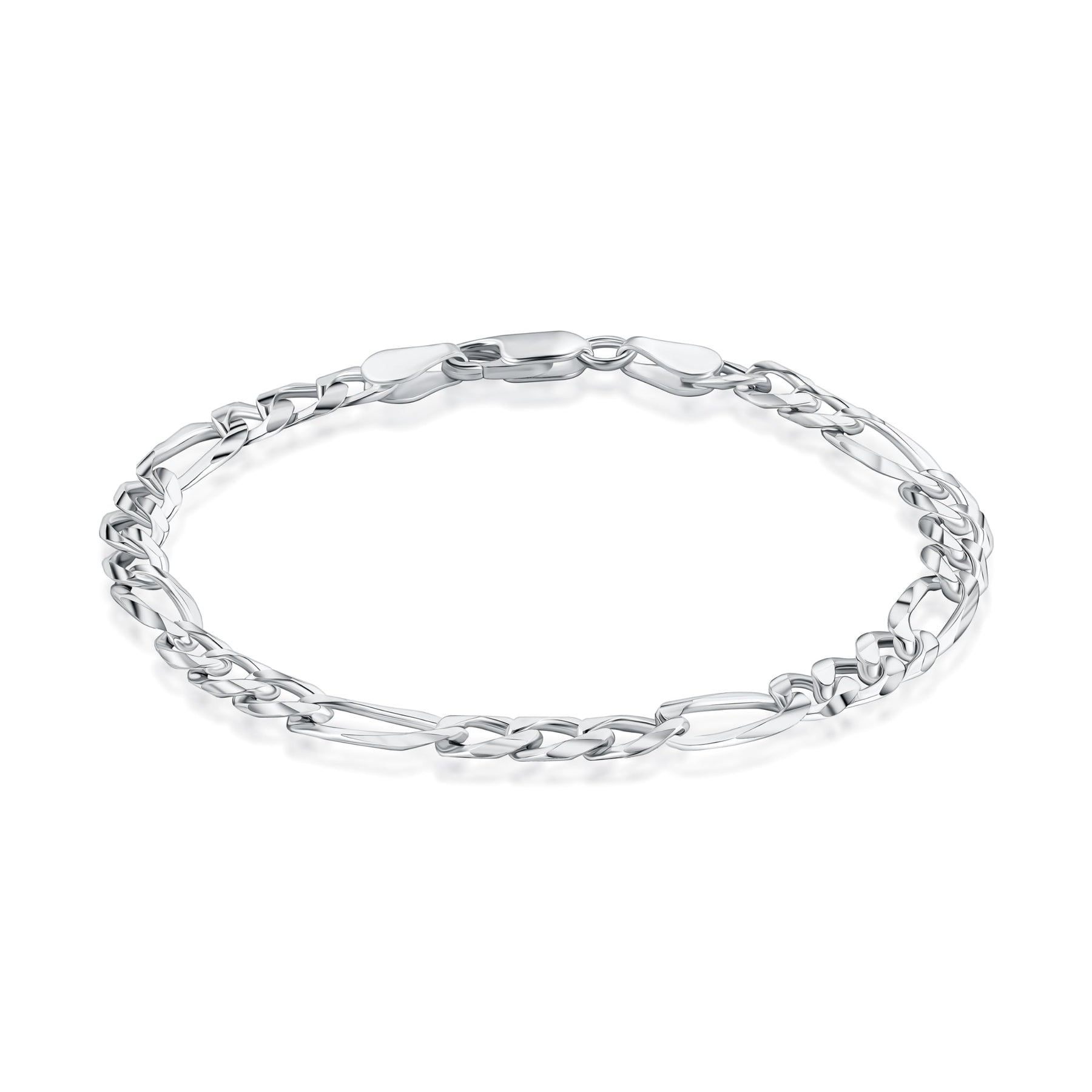 Sterling Silver Italian 4MM or 5MM Italian Solid Figaro Link 3+1 Chain Bracelet