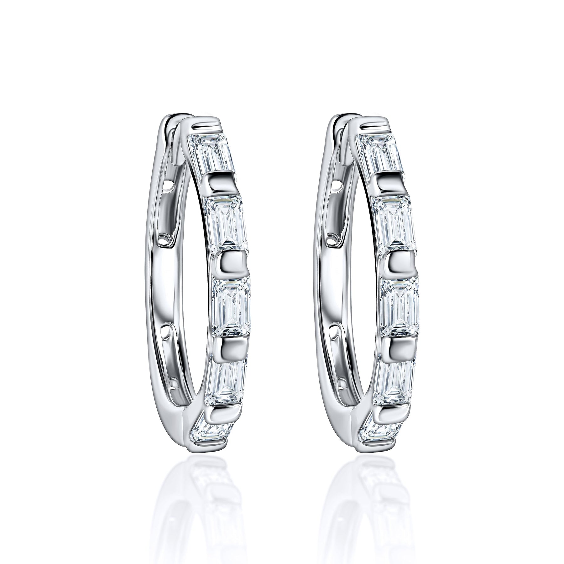 Sterling Silver Pave Baguette Stones Cubic Zirconia Huggie Hoops